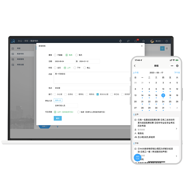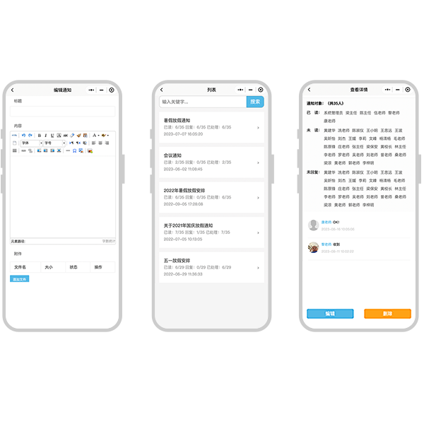 或公告,老师即时接收,消息传达到位。学校一键发布校内通知、任务