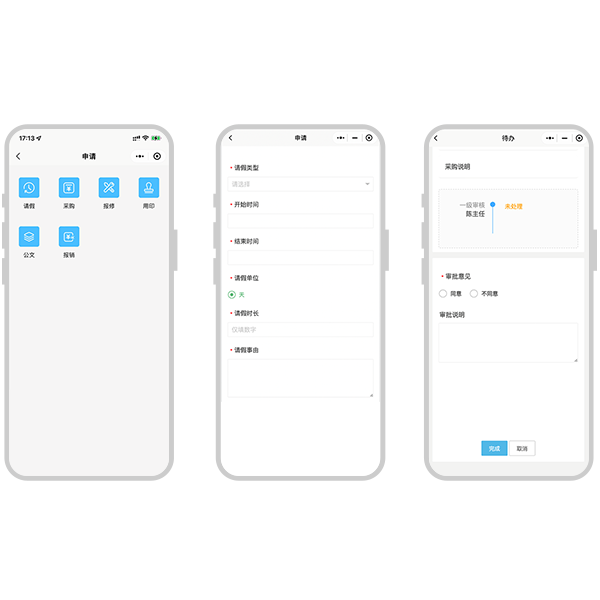 系统内置多个应用场景的表单和审核流程模版,同时也支持用户自定义表单和流程,打造个性化申请审批流程,满足用户独特管理。